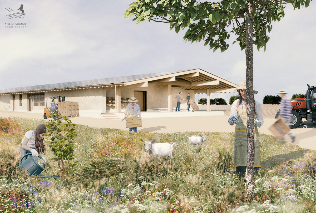 Accompagné de SCOP ECOZIMUT et Jean Langry, nous avons fait de notre mieux pour proposer un projet à l'image des personnes qui y travaillerons. Bois / Paille / Terre crue, avec un soupçon de conventionnel (pas trop). La terre du site sera récupérée pour réaliser le remplissage en adobe des refends ossatures bois ainsi que pour les enduits extérieurs sur les bottes de paille. Cette mise en œuvre de la terre crue se fera en chantier participatif... restez attentif car on pourrait avoir besoin de bras...